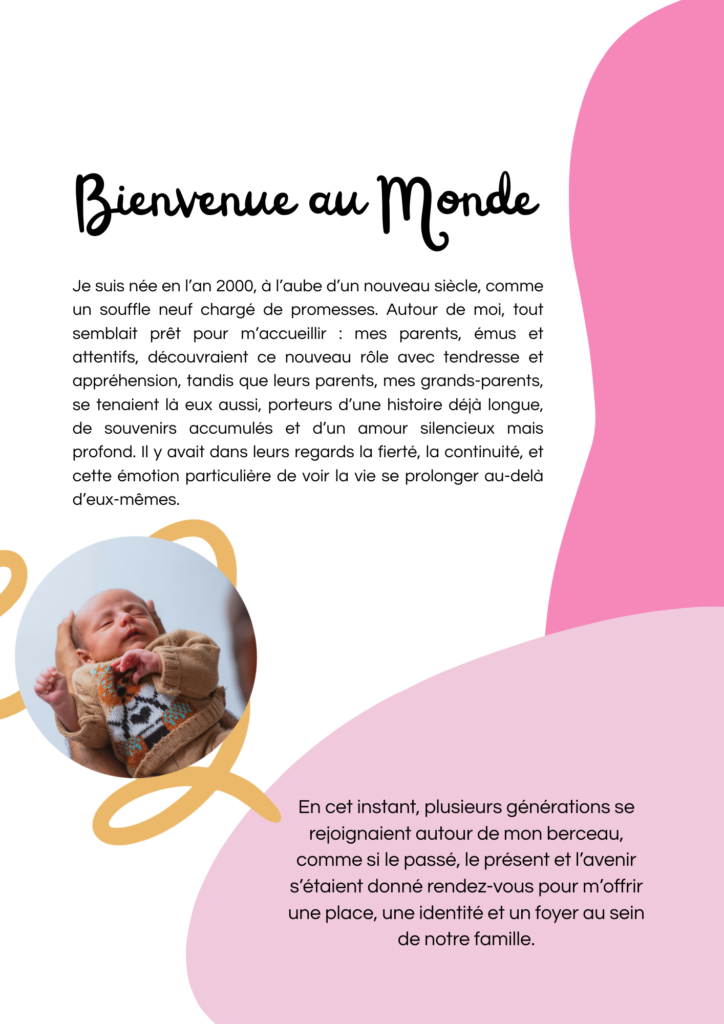 - ouvrir un chapitre (naissance, enfance, transmission, souvenirs…)