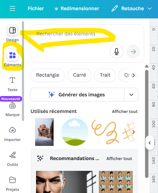 Quand on parle de « codes secrets » sur Canva, on parle en réalité de mots-clés précis à taper dans la barre de recherche.