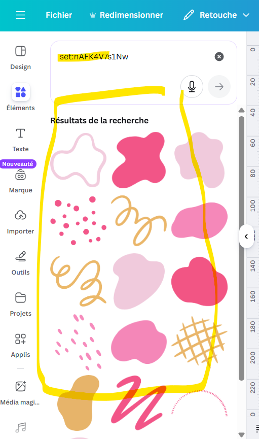 - Étape 3 : copie et colle le code dans la recherche Canva