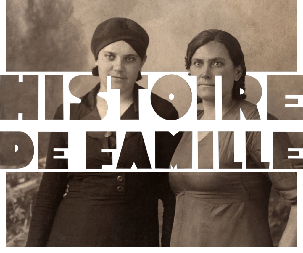 - « Histoire de famille » : Le texte est intégré entre les deux visages, créant un équilibre parfait.